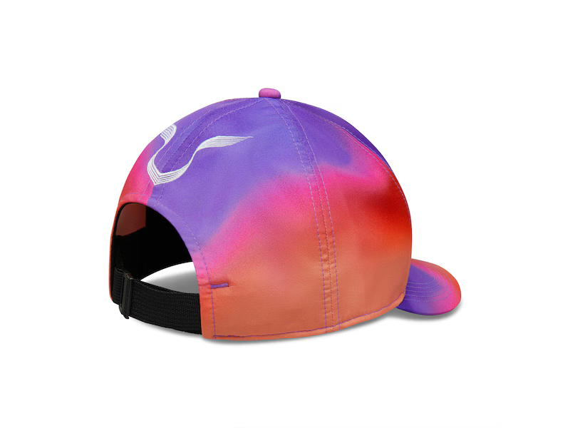 The Lewis Hamilton baseball cap as a Special Edition for the Grand Prix in Austin is an essential accessory for anyone who has a passion for the MERCEDES AMG PETRONAS FORMULA ONE TEAM. The cap in a purple and red design features an embroidered Mercedes star. Embroidered Lewis Hamilton wings and a MERCEDES AMG PETRONAS FORMULA ONE TEAM logo complete the look. The baseball cap can be adjusted using a plastic clip to ensure a perfect fit.