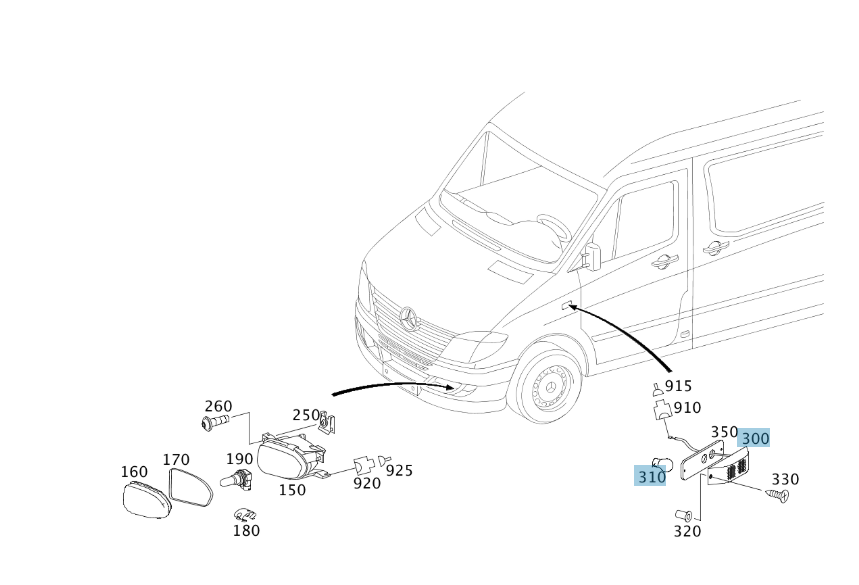 Mercedes-Benz O/S Wing Indicator Lamp, for 906 Sprinter, A0018205021